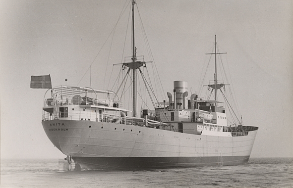 Lastmotorfartyget ANITA av Stockholm. Styrbords sida, snett framifrån.