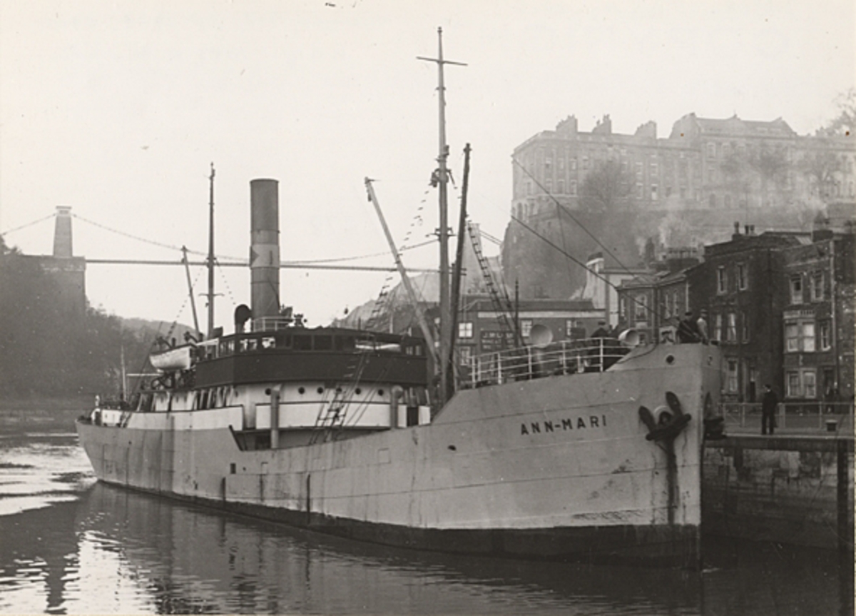 Lastångfartyget ANN-MARI av Stockholm i Bristol med Clifton Bridge i bakgrunden.