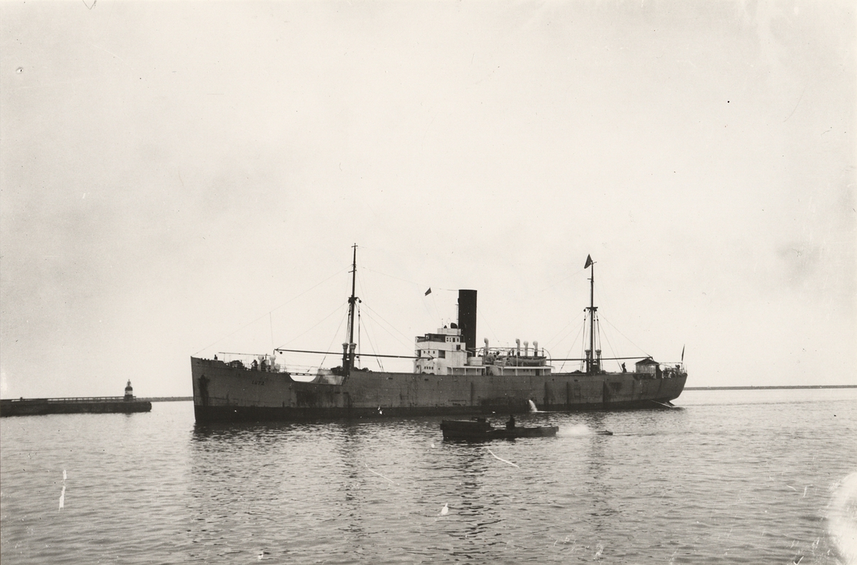 Foto i svartvitt visande lastångfartyget "LUTZ" av Oslo i Köpenhamn i slutet av 1930-talet.