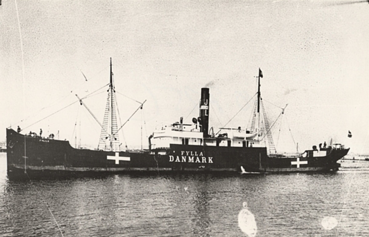 Foto i svartvitt visande lastångfartyget "FYLLA" av Köpenhamn troligen från 1939 - 1940-talet.