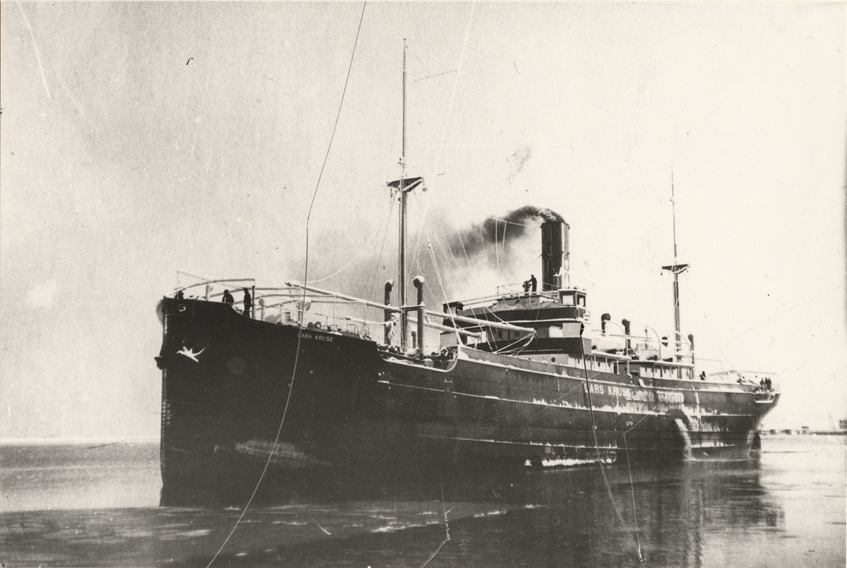 Foto i svartvitt visande lastångfartyget "LARS KRUSE" av Köpenhamn troligen från 1930-talet.
