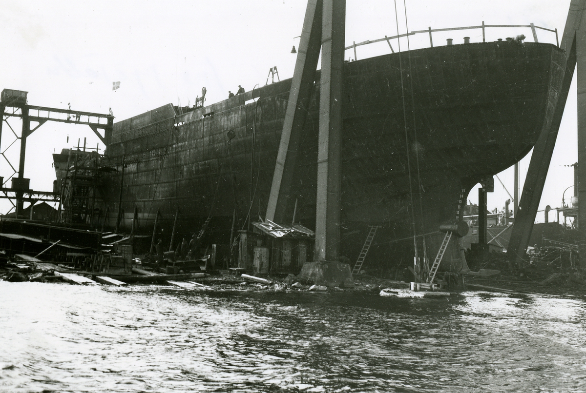 Troligen last och passagerarångaren HEIMDALL för stockholm före sjösättningen 1915.
