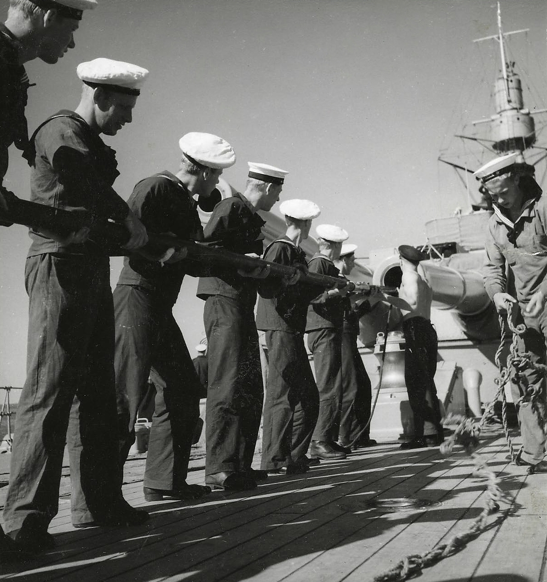 Kanonerna viskas ombord på pansarskeppet SVERIGE.