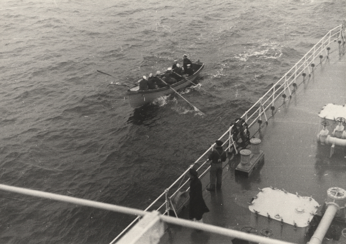 Hjälpkryssaren WARIA sänder signalmatroser ombord till SVEADROTT, 1940.
