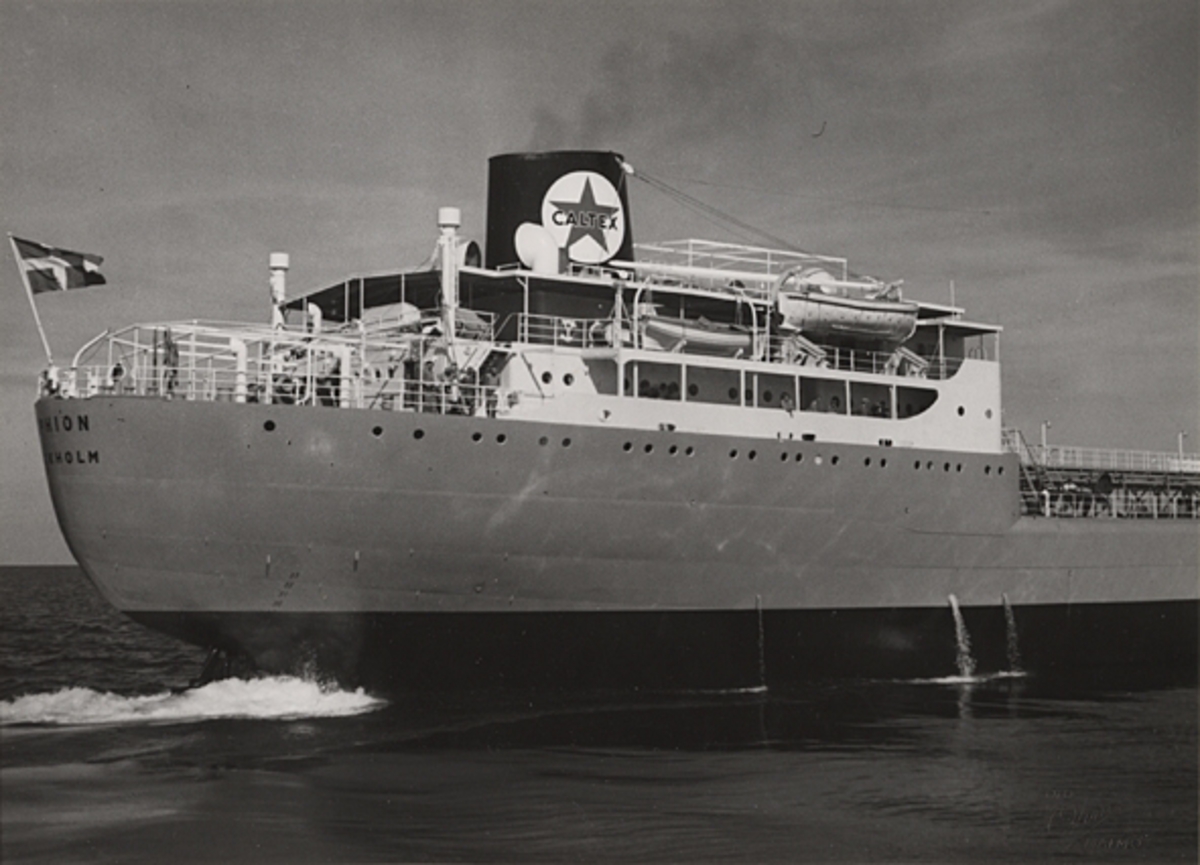 Tankmotorfartyget AMPHION. Från provturen. Akterskeppet sett från stb:s sida.