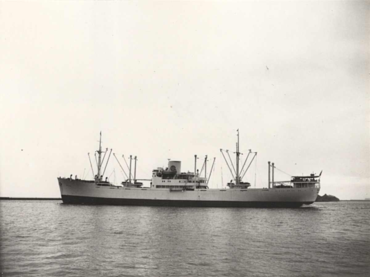 Foto i svartvitt visande lastmotorfartyget "BATAAN" taget i Köpenhamn under mars månad 1962.