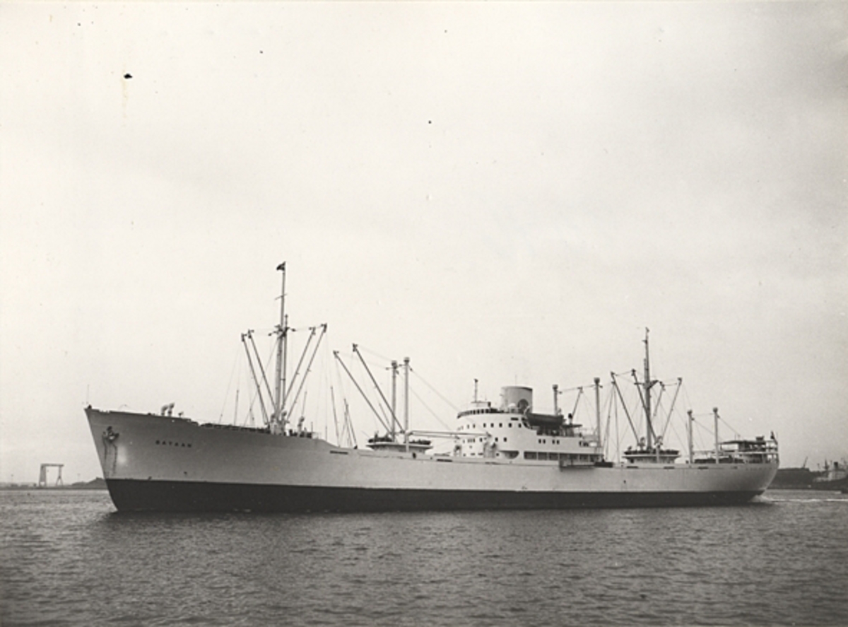 Foto i svartvitt visande lastmotorfartyget "BATAAN" taget i Köpenhamn under mars månad 1962.