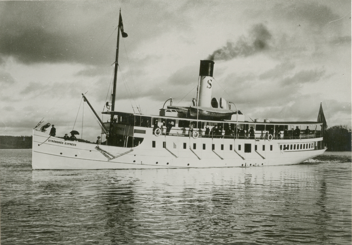 Passagerarångfartyget Strängnäs Express av Strängnäs troligen på ingående till Strängnäs 1908.