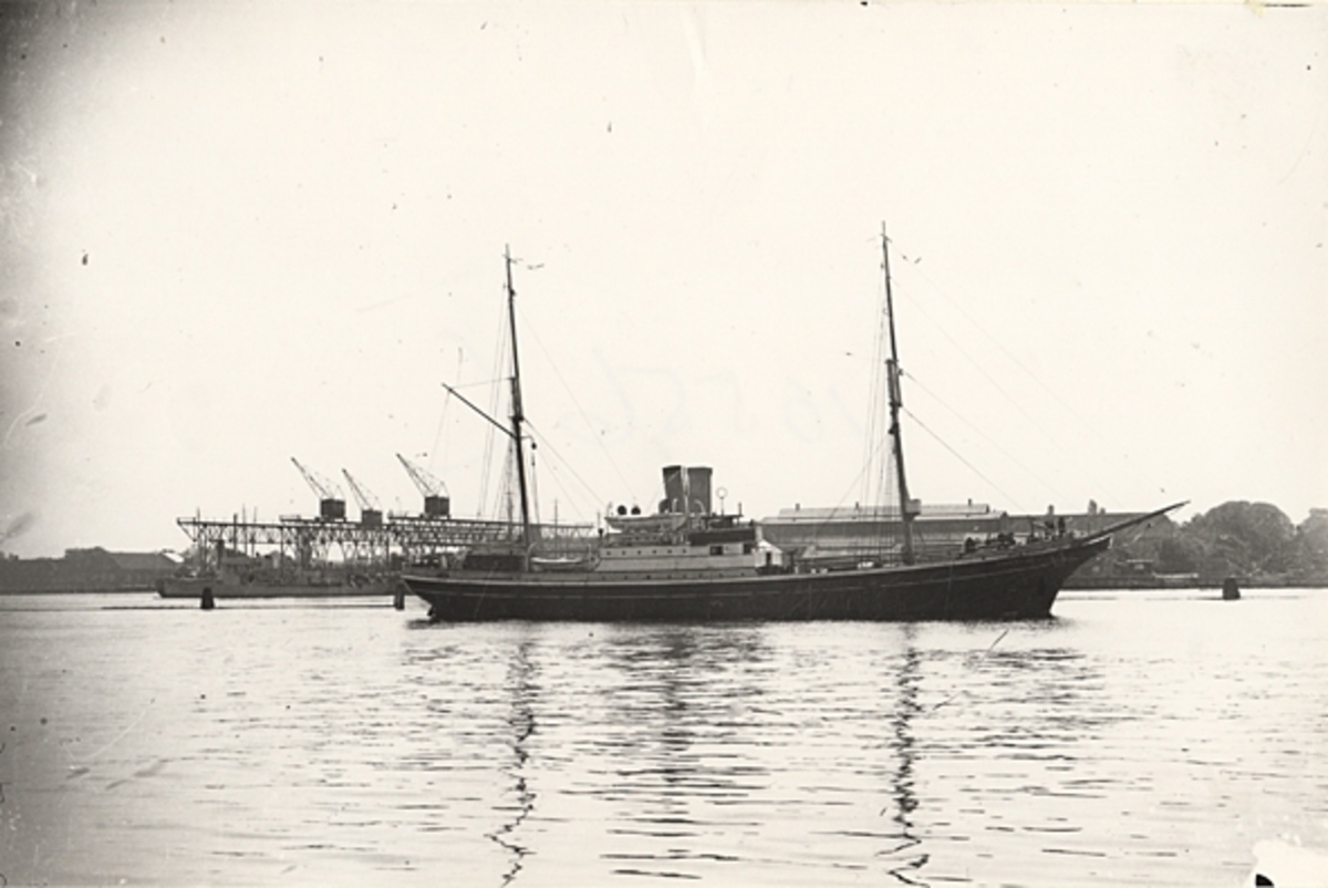 Foto i svartvitt visande lastångfartyget "HANS EGEDE" av Köpenhamn i Köpenhamn, troligen under 1930-talet.