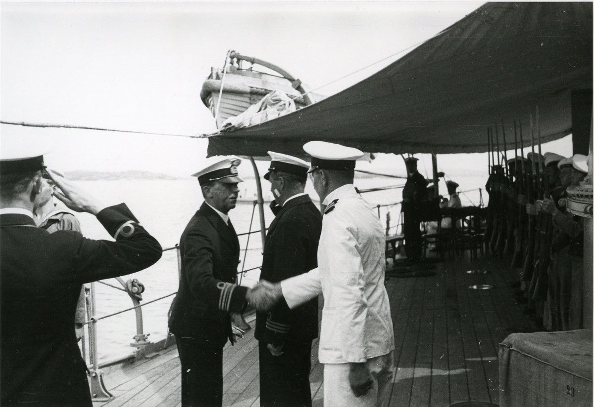 Kommendörkapten tas emot ombord på ett örlogsfartyg år 1934.