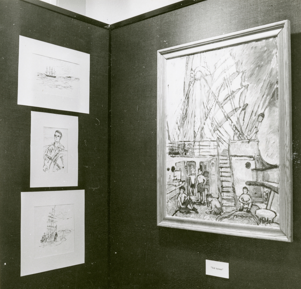 Utställningen "Proud Canvas". Teckningar och målningar utförda av Hilde Lütken ombord på PASSAT under en resa Karlshamn-Kapstaden år 1947.
