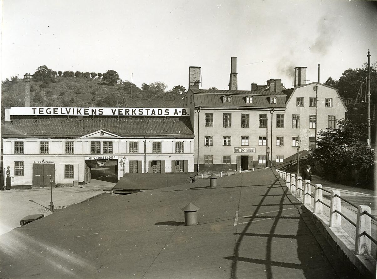 Södra varvets omgivningar. Gamla byggnader ö om Tegeltorget. I bakgrunden Fåfängan.