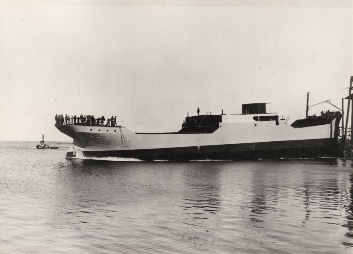Sjösättningen av lastångfartyget OSCARSBORG. Byggnr. 245.