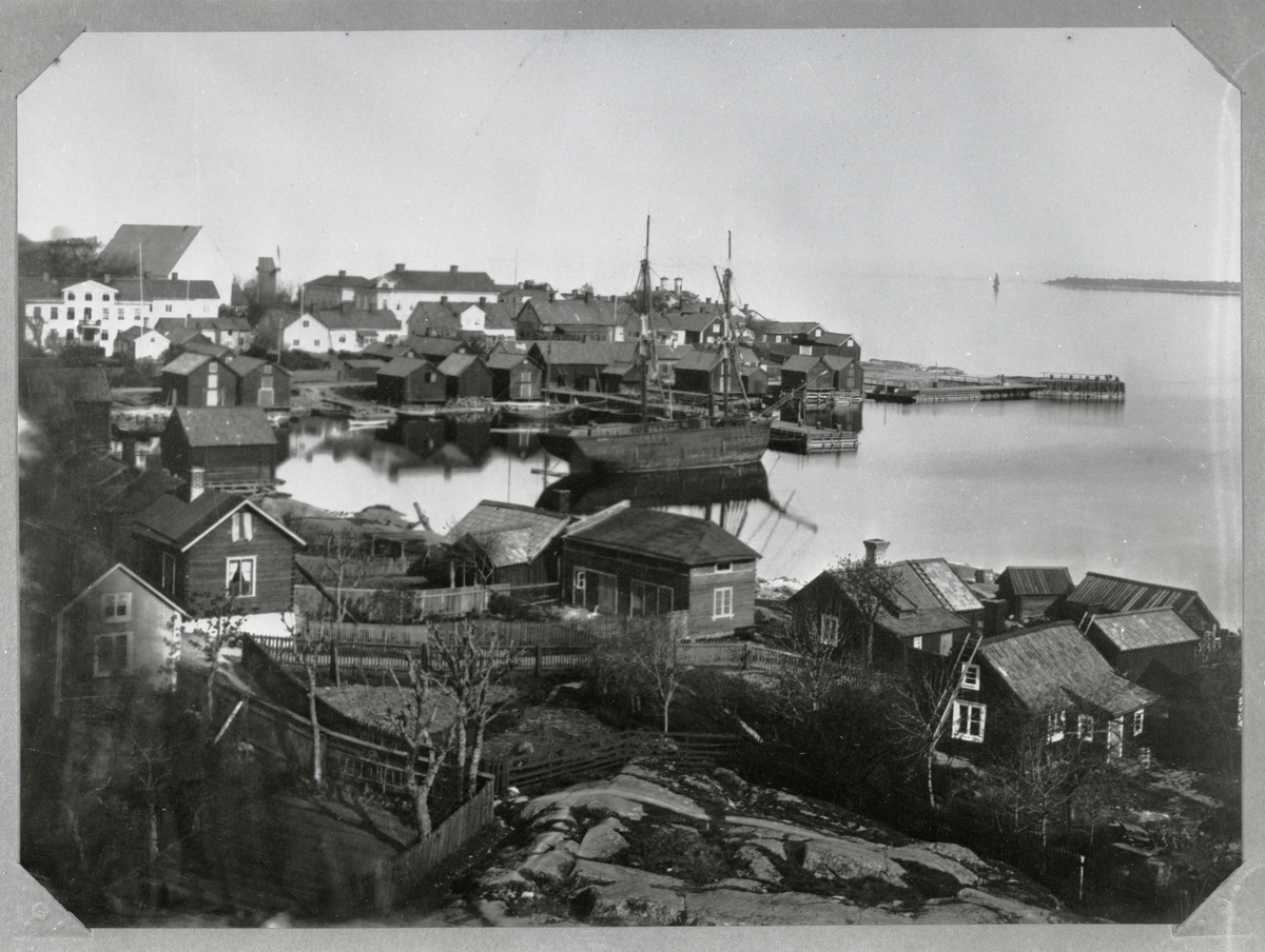 Öregrunds hamn på 1890-talet, troligen med skonerten Svante av Östhammar. Gamla vågbrytaren spolierades 1897.