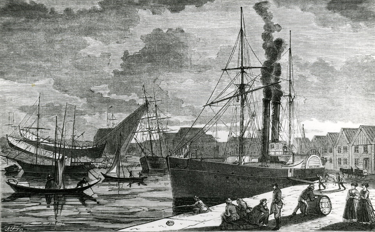Teckning från hamnen. 1869. Teckning av F.D. (tillh. Gävle Museum)