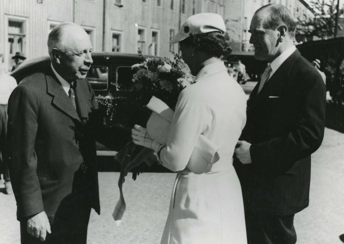 Oskarshamns varv. Fartygsdopet 1.7.1952. Direktör Robert Ameln med bergsrådinnan och bergsrådet von Rettig.