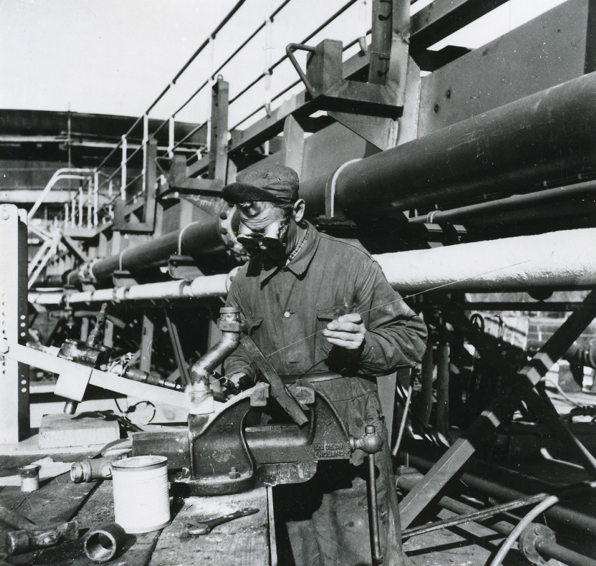 Oskarshamns varv. Rörsvetsning ombord på ATLANTIC CLIPPER´s däck i oktober 1955.