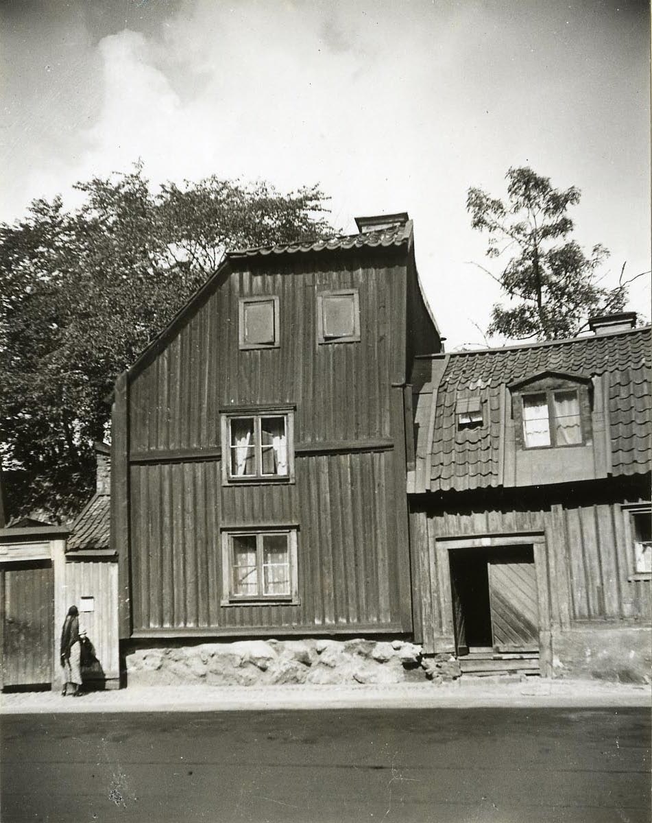 Titel: Södra varvets omgivningar. Gamla hus vid Stigbergsgatan, 1934.