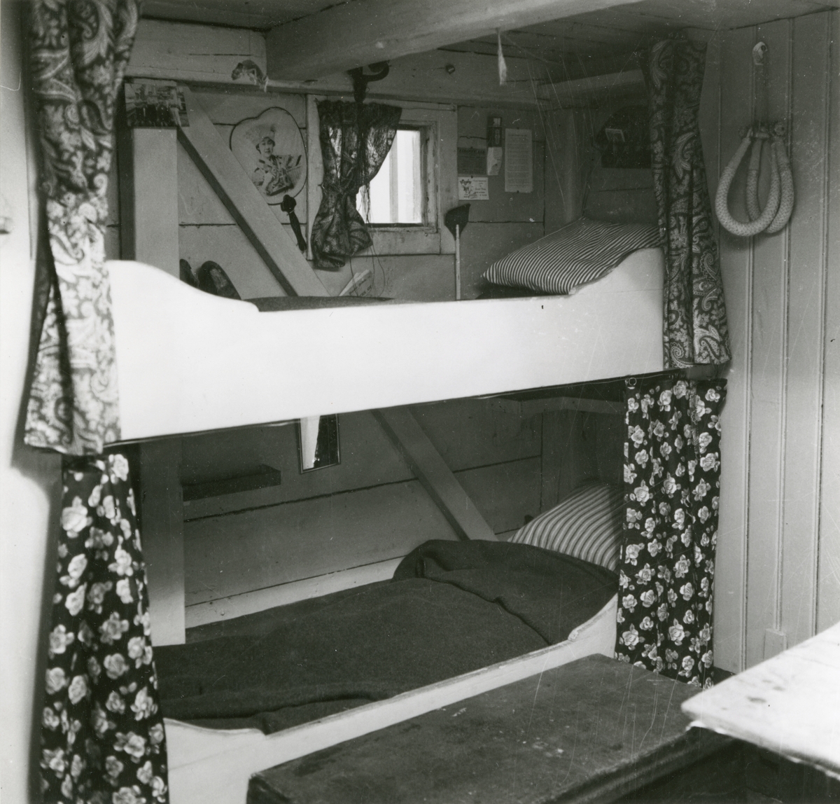 Samlingarna under uppordnade våren 1936. Utställningen i Sjöfartsavdelningen. Sovkojer i HOPPETS skans.