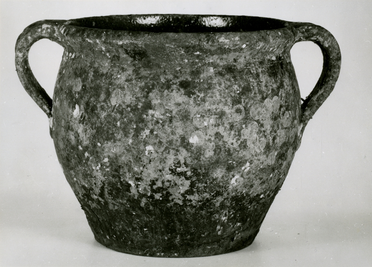Kruka av rött lergods, invändigt glaserad. Sjöfynd från Djurhamn.