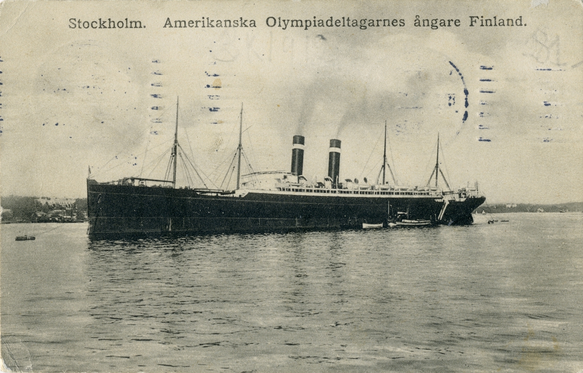 Vykort från 1912 visande passagerarångartyg FINLAND i Stockholm.