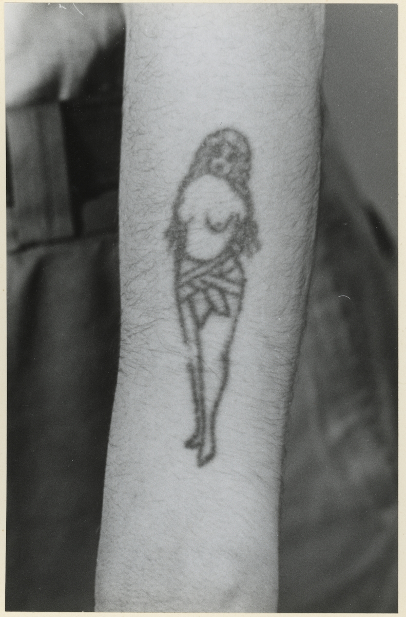 Kvinnofigur tatuerad i England 1930 för 5 sh.