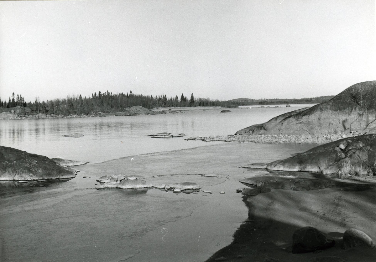 Stranden på Pålholmens norra sida gav ett skydd för uppdragna skötbåtar.