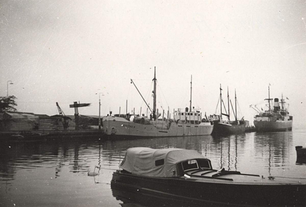 Lastmotorfartyget EDITHA av Eckernförde liggande i Norrtälje på 1960-talet.