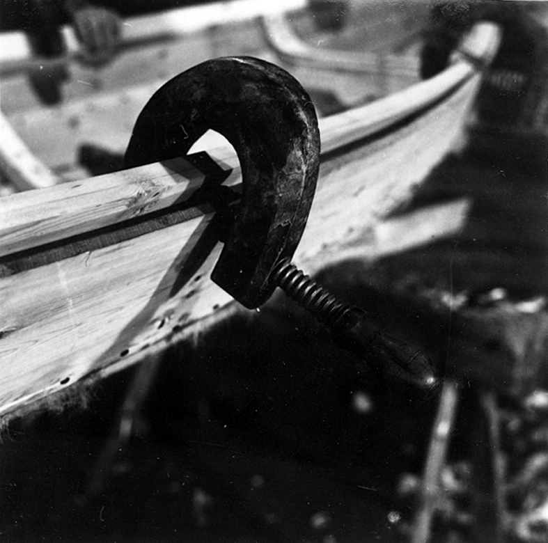 Neg nr 262, skruvtving som håller babord relingslist på plats. Foto 20.8 (1962).