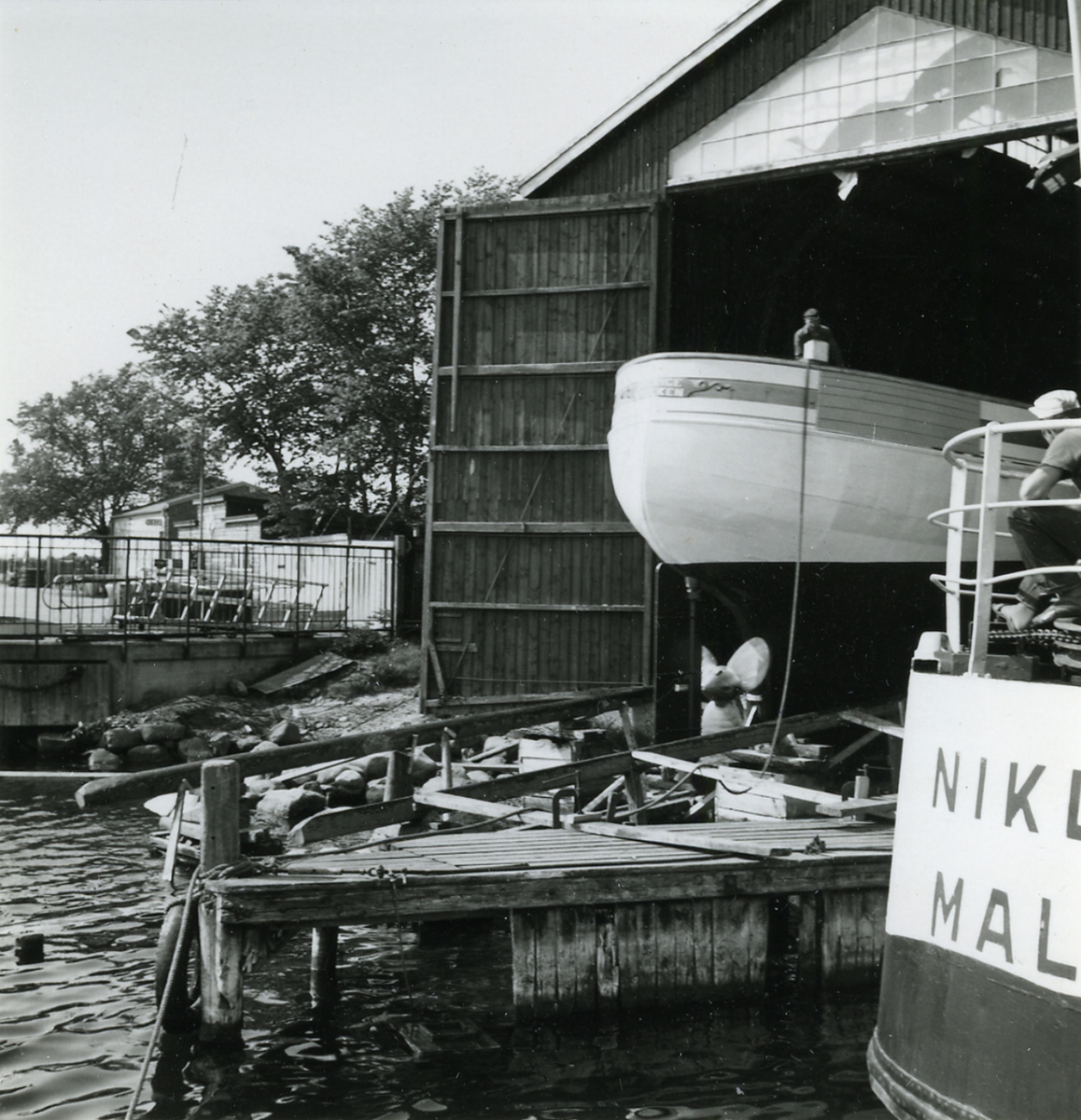 SVERIGE av Stocken går i sjön. t.h reparenten Niklas av Malmö, som ska slipdras.