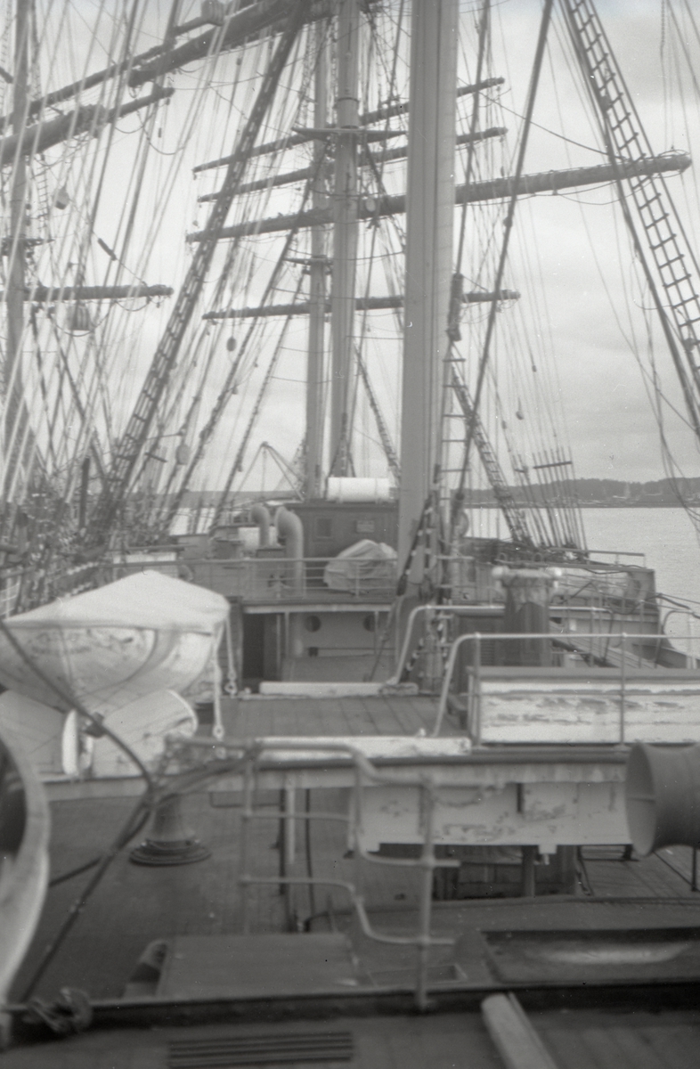 [från fotobeskrivningen:] "Däcket från poopen och föröver på 4-mastbarken PASSAT. Foto i Stockholm 1944" [---]