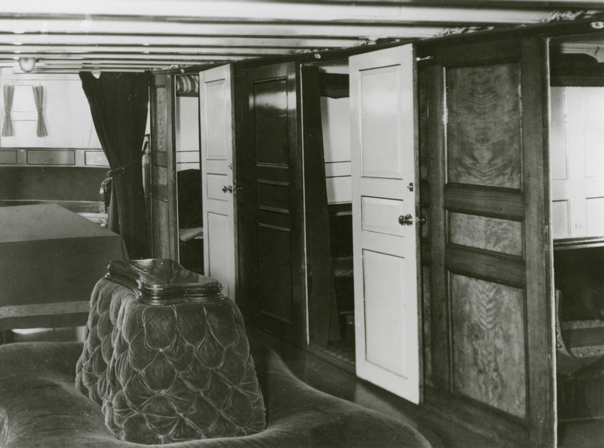 Interiörbilder från passagerarångfartyget S/S BIRGER JARL tagna i samband med skrotningen på Finnboda varv 1951.