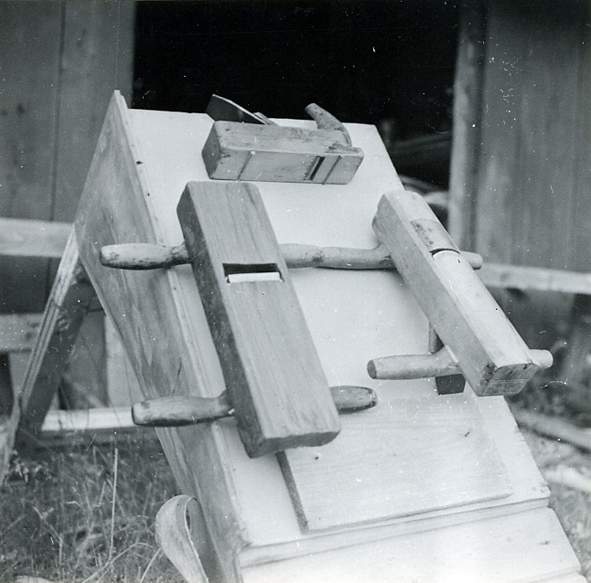 2. Rivhyvel eller dragoxe. Använd till att hyvla borden med sedan de blivit tillhuggna eller täljda med täljyxa och hyvlade med 3.