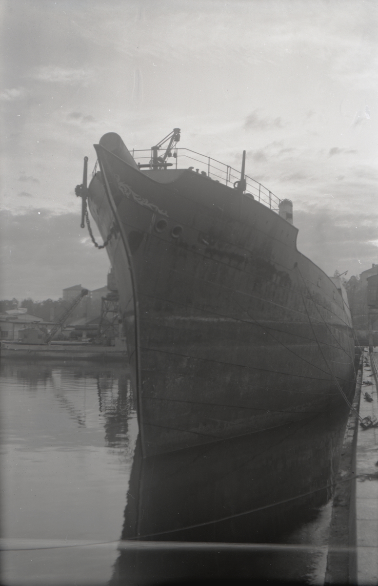 [från fotobeskrivningen:] [---] "F d 4-mastbarken MOSHULU avriggad som magasin (hulk) i Hammarbyhamnen, Stockholm 1948." [---]