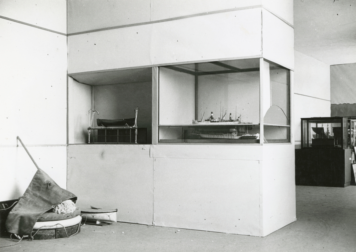 Samlingarna under uppordnade våren 1936. Utställningen i Sjöfartsavdelningen. Avdelningen för dykeri och bärgning.