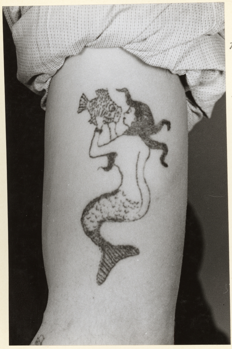 Tatuering på vänster överarm, utförd av Augustsson själv.