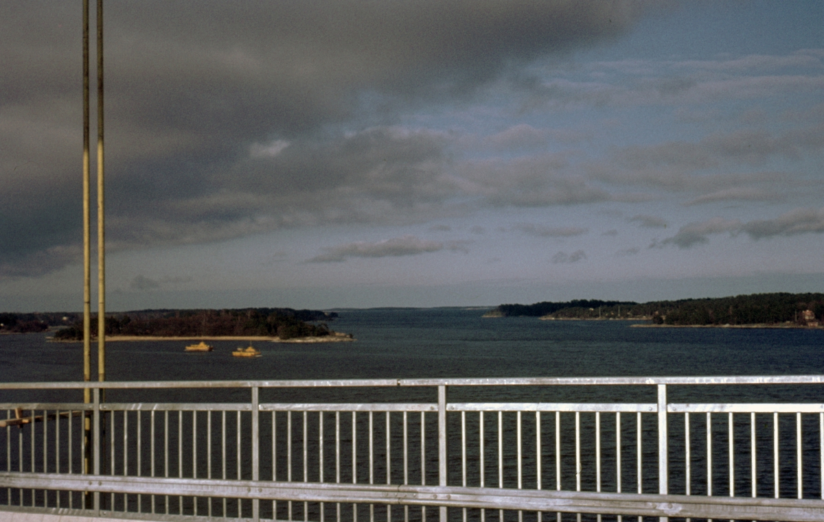 De två sista bilfärjorna mellan Djurö och Ramsmora. Fotografi taget från den nybyggda Djuröbron.