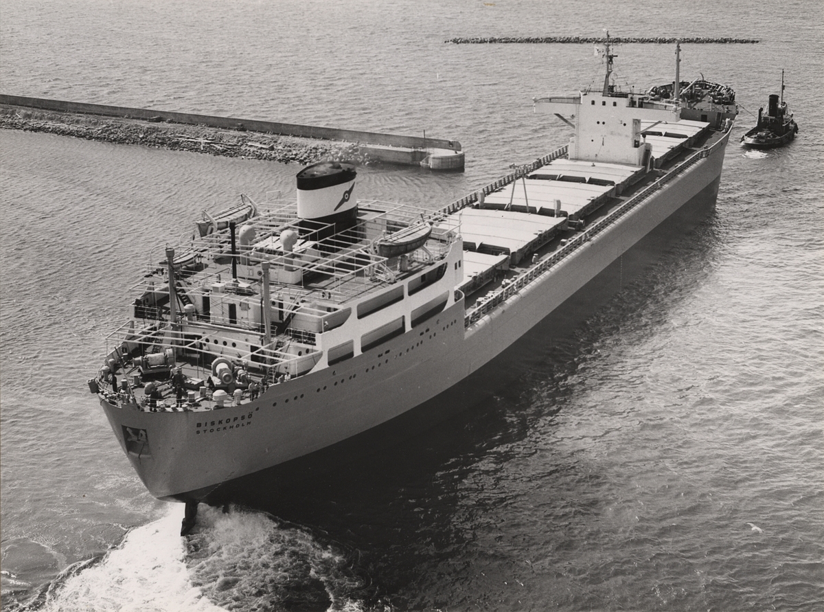 Lastmotorfartyget BISKOPSÖ av Stockholm på provresa 14 sept. 1956.