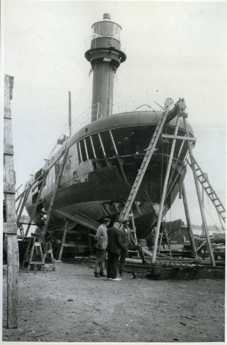 "Rörhamns varv i Öregrund. FINNGRUNDETS fyrskepp förlänges."
