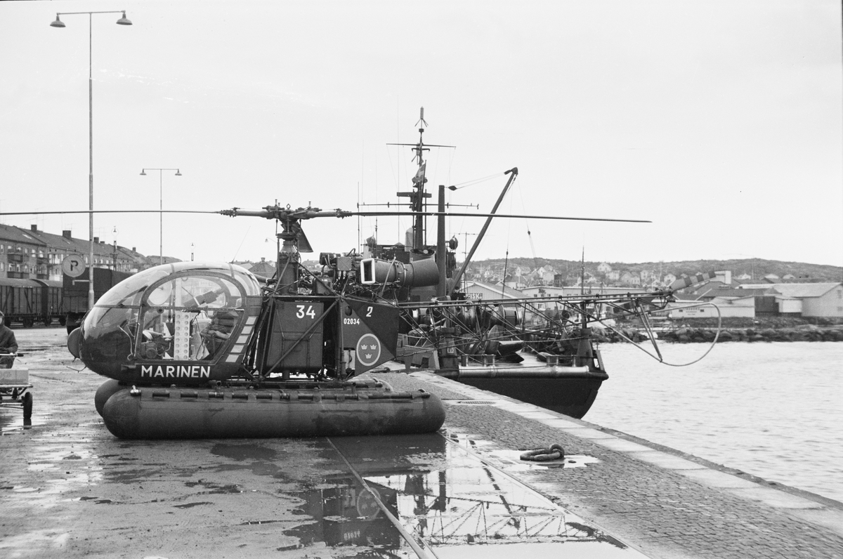 En Helikopter 2 (Hkp 2) på kajen i Lysekil. I bakgrunden HMS SKAFTÖ.