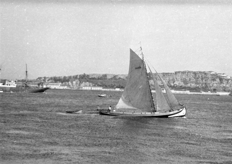 Odäckad lastbåt, s.k. barea i Tejofloden, Lissabon.