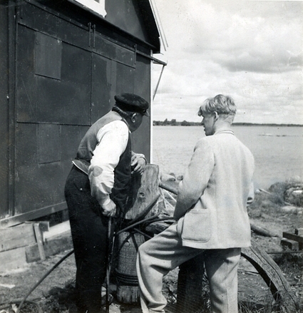 Varvsägaren Fredrik Jonsson berättar för Rolf Vallerö (SSHM) om sitt varv