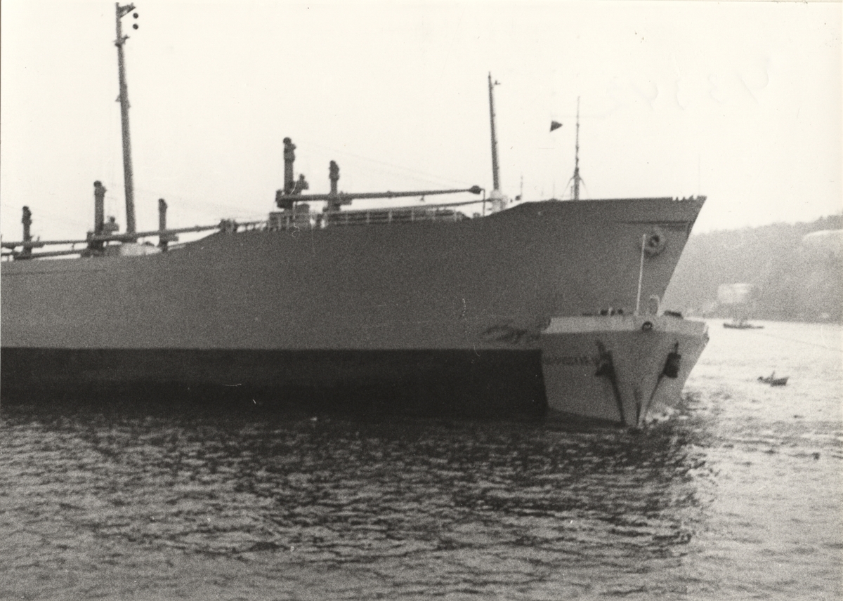 Johnsonlinjens lastmotorfartyg "CANADA" skär ryska tankern "RAVA RUSSKAYA"'s kurs i västra Halvkaksundet (södra Lidingö) [?] med ombordläggning som följd den 24 okt. 1967.