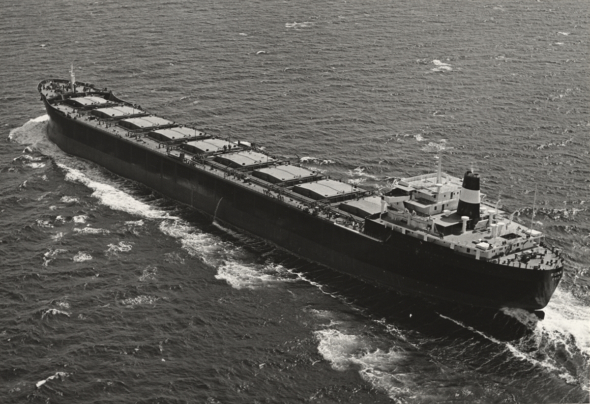 Foto visande det första av två bulkoljefartyg på 72.100 tons d.w. som Hagb. Waage, Oslo, beställt av Götaverken döptes på fredagen den 16/6 1967 till "RUNA" och övertogs en stund senare av rederiet i samband med flaggskifte på fartyget.