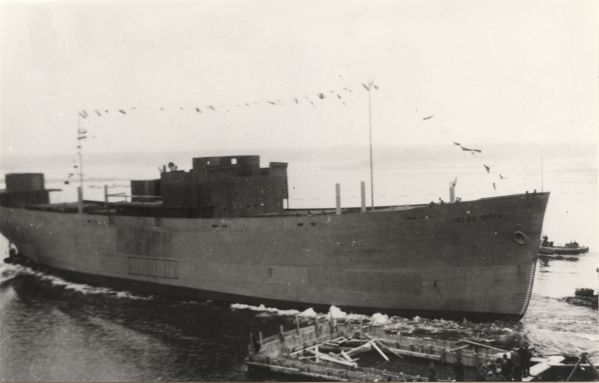 Titel: M/S HELGA SMITH:s sjösättning i Sölvesborg 12/4 1947.