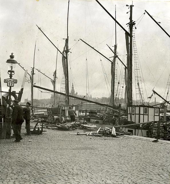 Lossande ålandsskutor vid Strandvägskajen 1936.