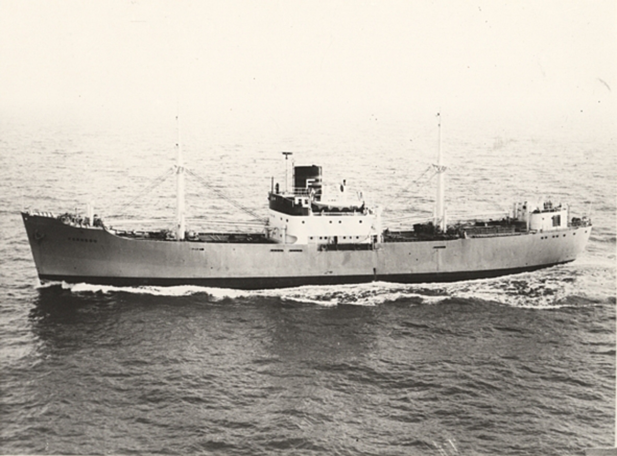 Foto i svartvitt visande lastmotorfartyget "FERNEBO".