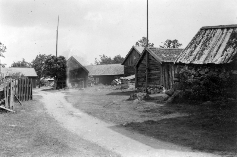 Småland, Kalmar län, Stranda härad, Döderhults socken, Runnö. Sörgården, bygata.