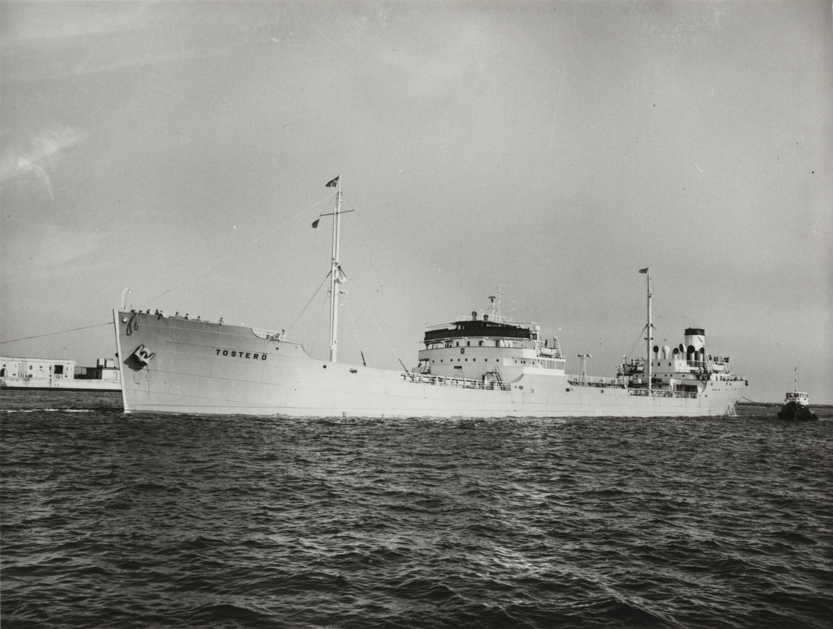 Foto i svartvitt visande malm- & tankmotorfartyget "TOSTERÖ" taget i Köpenhamn under oktober månad 1961.