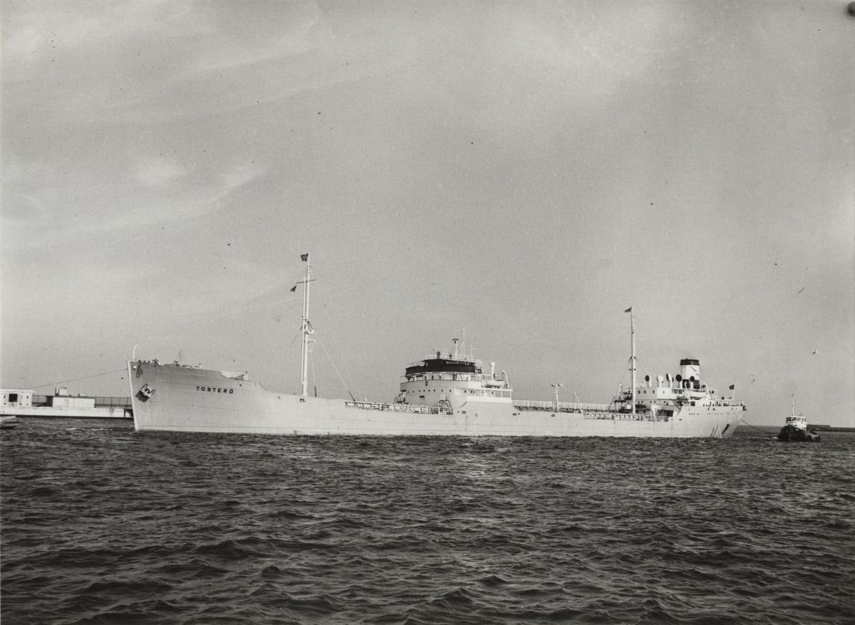 Foto i svartvitt visande malm- & tankmotorfartyget "TOSTERÖ" taget i Köpenhamn under oktober månad 1961.